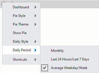 Daily Period - The Daily Period menu contains three different Period Types - Monthly, Last 24 Hours/Last 7 Days and Average Weekday/Week.