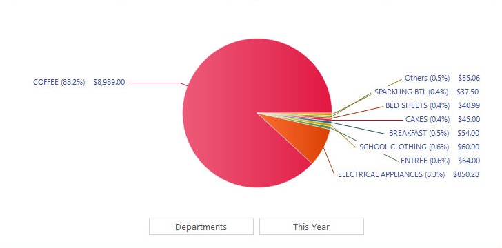 The second button on the right-hand side is used to toggle the period of time that is conveyed in the Pie Chart (e.g. Financial Year, This Year, Today or individual months).