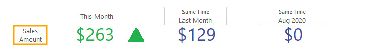 Sales Amount - This is amount of sales expressed as a currency value for the currently selected period.