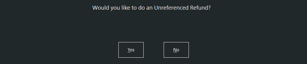 The following prompt "Would you like to do an Unreferenced Refund?" will be displayed; select "Yes".