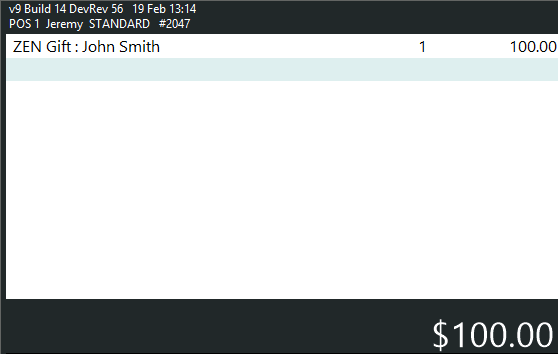 After the sale is tendered, the Gift Voucher Balance will increase to $100.00.