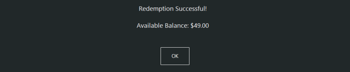 After performing a successful redemption, a prompt will appear showing the Available Balance remaining on the Gift Voucher.
