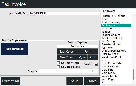 You are here: POS Screen Setup > Function List
