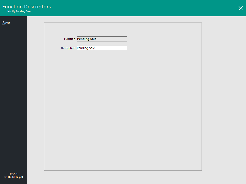 To configure the Pending Sale Function Descriptor, go to: Back Office > Setup > Function Descriptors > Select "Pending Sale" > Modify.