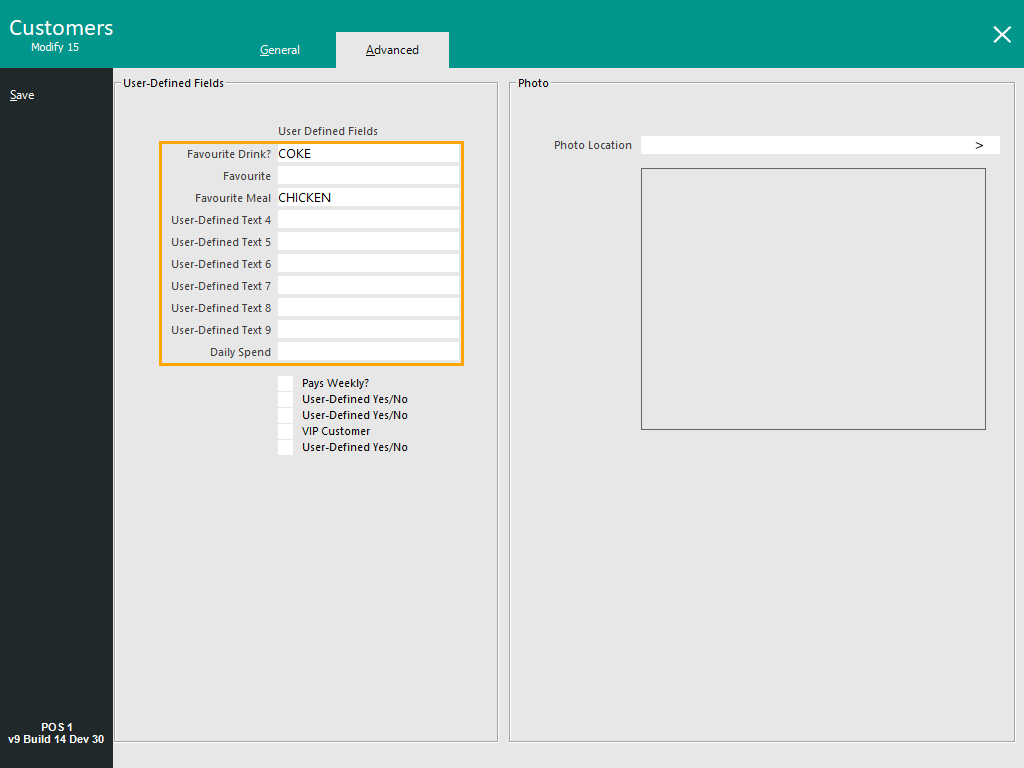 In the Advanced tab, the User-Defined Text Fields are displayed at the top of the Advanced tab.