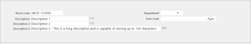 A Stock Item can have up to three descriptions, and when adding a new item, the 2nd description will automatically populate based on the first description entered.