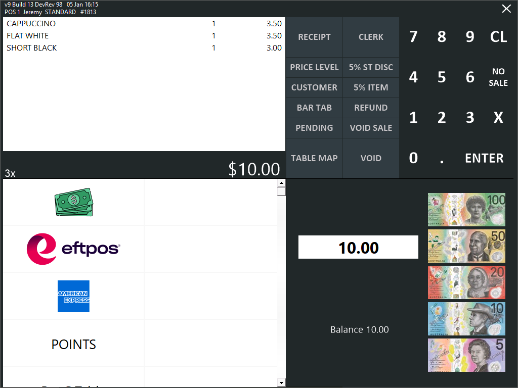 Rounding – This checkbox allows the tender to be rounded up or down depending on the subtotal.
