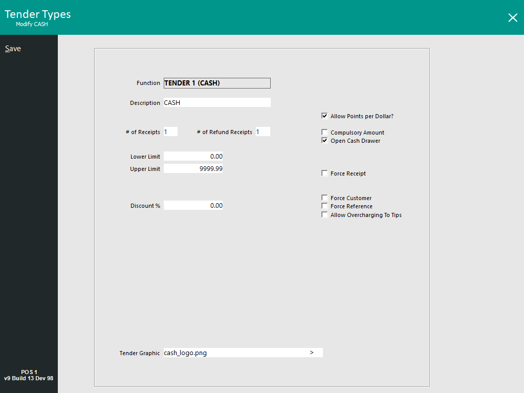 Allow Points per Dollar – This checkbox allows for sales of this tender type to accumulate points for Customer Loyalty.