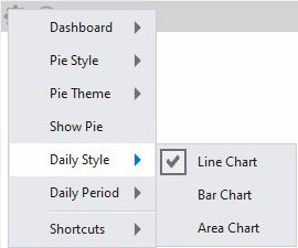 When the Pie Chart is being displayed on the Dashboard, the Daily Chart option will appear in the menu.