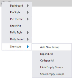 Hide Empty Groups/Show Empty Groups - This option will show or hide all Shortcut Groups that do not contain any Shortcuts.