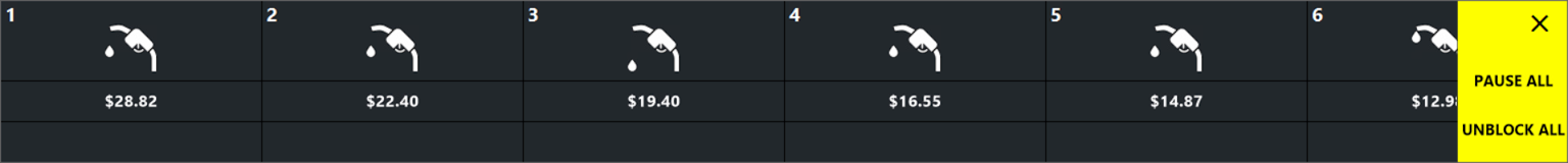 The Unblock All option can be used to unblock all pumps, enabling fuel delivery to resume.