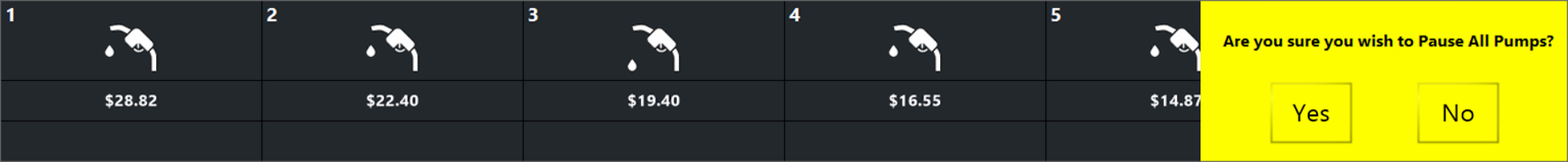 The Pause Delivery and Resume Delivery function is available by pressing on a pump number while a customer is pumping fuel.