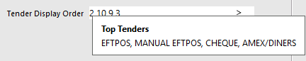 Hovering over the Tender Display Order field will also show the full names of the Tender Types in the entered order.