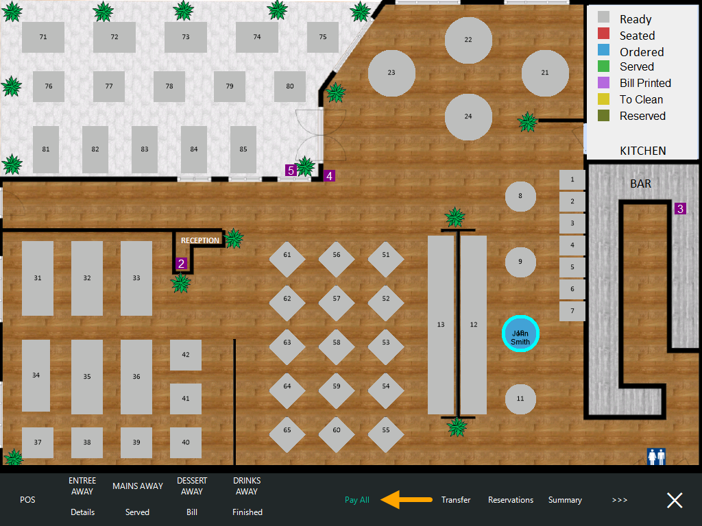 To pay a Table, press the "Table Map" button on the POS Screen to go to the Table Map > Select the Table > Pay All.