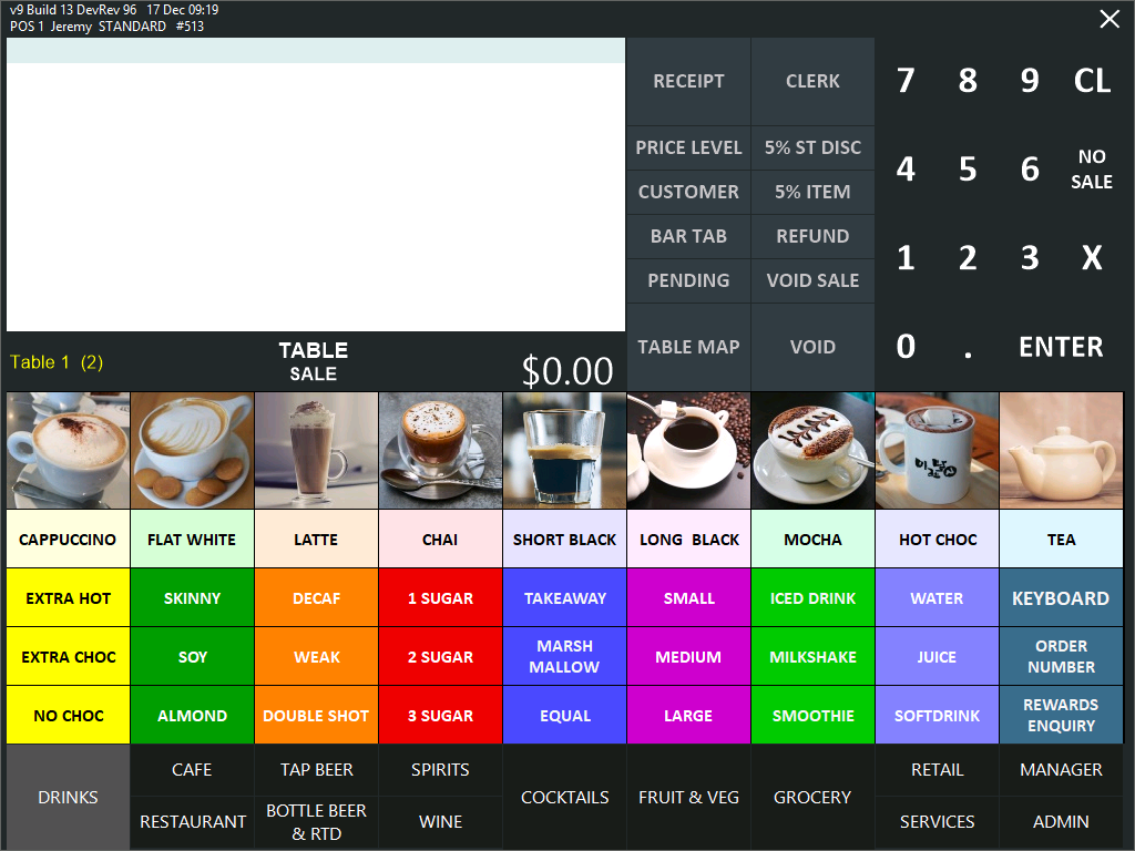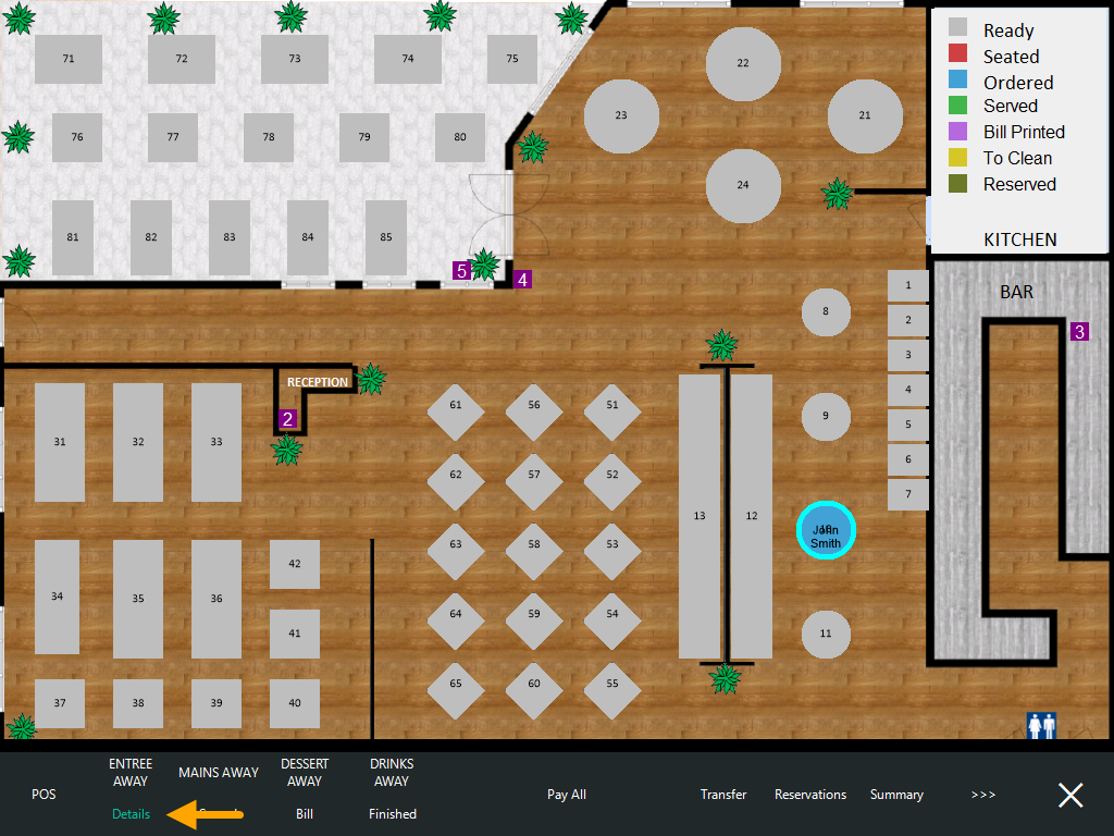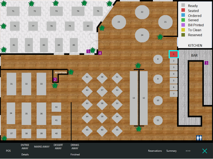 When selecting a table and pressing the "POS" button on the bottom-left corner of the Table Map, the number of Covers prompt will be displayed, then POS Screen will open, enabling items to be saved to the table.