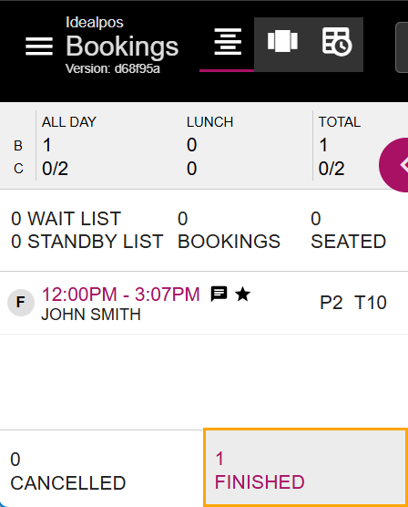 Select the Table and press "Finished" so that it is ready for the next guest.