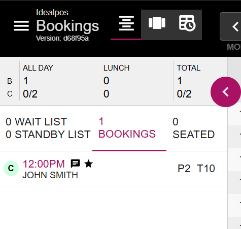 It will also appear within the Idealpos Reservations window (accessed via the Idealpos Table Map > Reservations button).