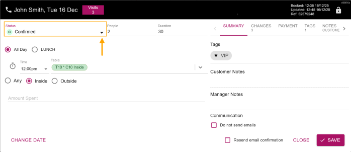 Once the customer processes their payment as per the process outlined below, the Reservation's status will be updated and will then appear in the Idealpos Restaurant Table Map and Idealpos Reservations window.