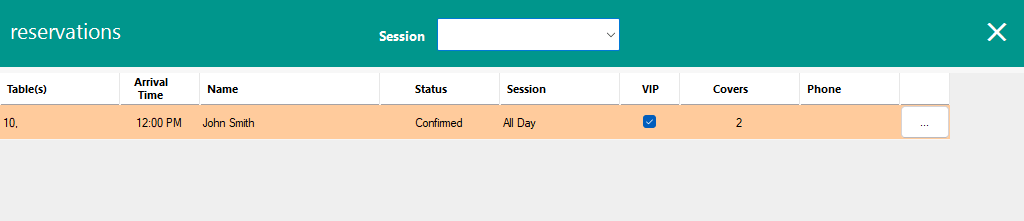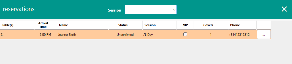The Reservation will also appear in the Idealpos Reservations window (accessed via the Idealpos Table Map > Reservations button).