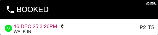 A Booked prompt will be displayed to confirm the creation of the Walk In Reservation.