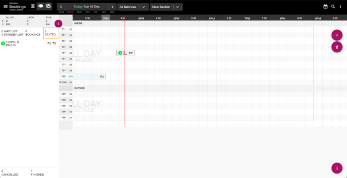 After pressing "Occupy", the Walk in reservation will be created in Now Book It and will appear in Now Book It under the Seated page with a Seated status.