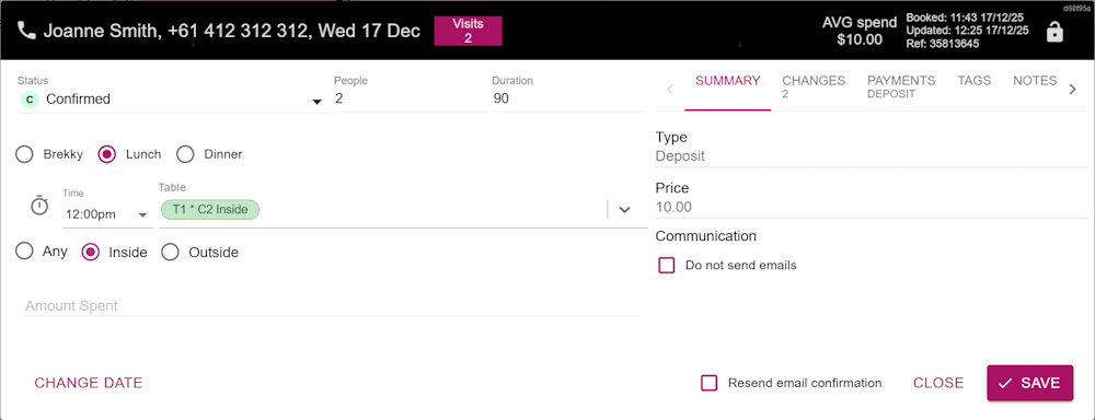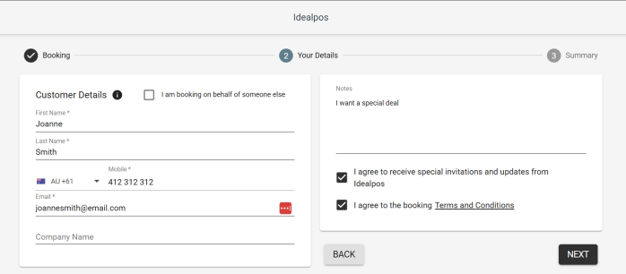 The reservation will also appear on the Idealpos Restaurant Table Map