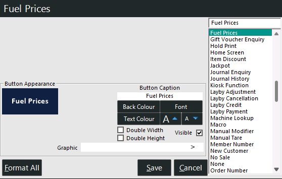 This is the most widely used function when creating a POS Screen layout, and is the default function used when selecting a new button.